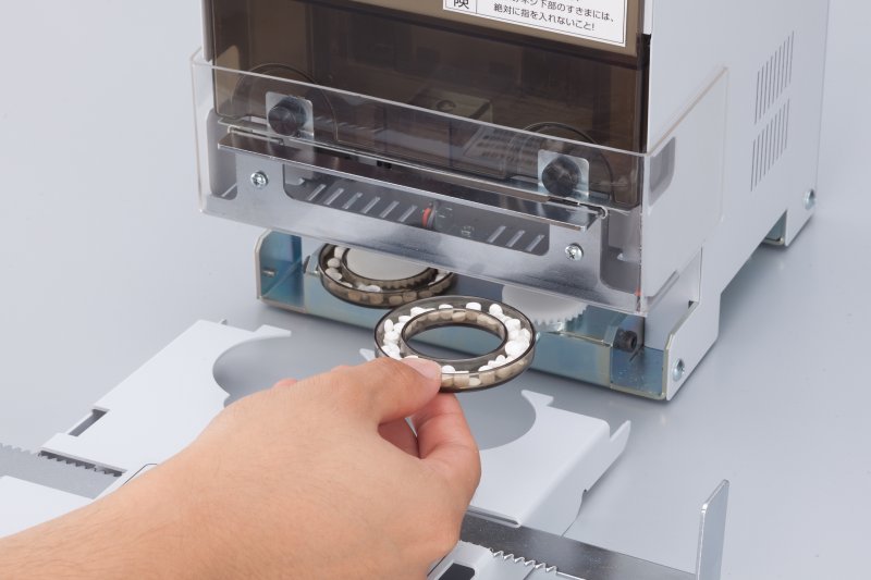 ①穿孔(穴あけ)した抜きカスが一目瞭然な半透明なカス箱