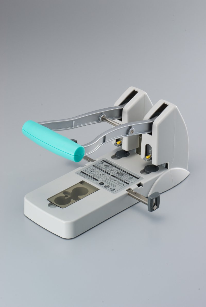 このパンチでたくさんの枚数の資料に穴あけするには大変便利な製品です。