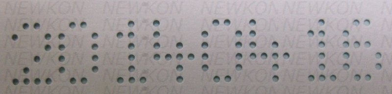 打抜機(パーフォレーター)は、日付・番号・マーク・社名・コード・記号等を穴文字によって直接用紙等(書類・保証書・有価証券・伝票その他)に打抜くため、偽造改ざんが不可能です。