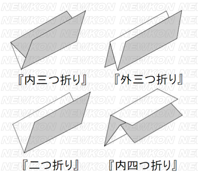 折りの種類:二つ折り/内三つ折り/外三つ折り/内四つ折り