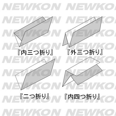 折りの種類:二つ折り/内三つ折り/外三つ折り/内四つ折り