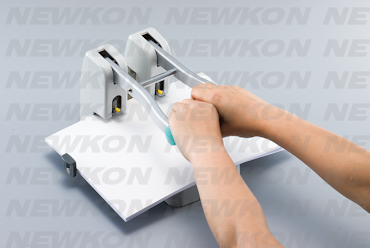 ハンドル操作により軽い力で一度にたくさんの枚数(最大穿孔能力が110枚の厚さ)の穴あけができるパンチです。