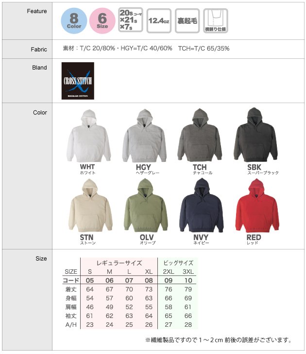 CROSS STITCH(クロスステッチ全8色:XXL・XXXL) CS2220 ¥2180