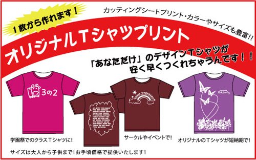 仲間とおそろいのオリジナルTシャツをつくりたい!子どものクラブチームの応援Tシャツがほしい!自分だけのお買い物バッグがほしい!そんな皆様の声にお答えして