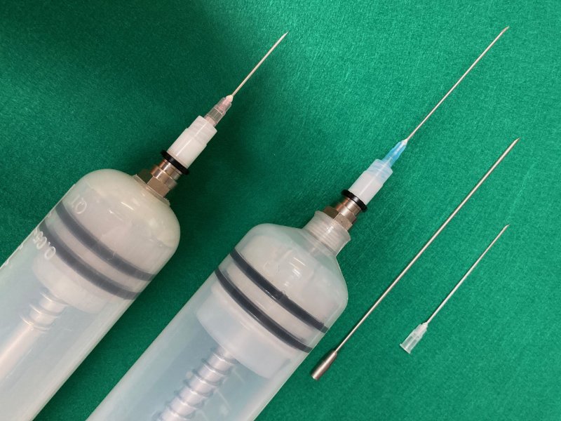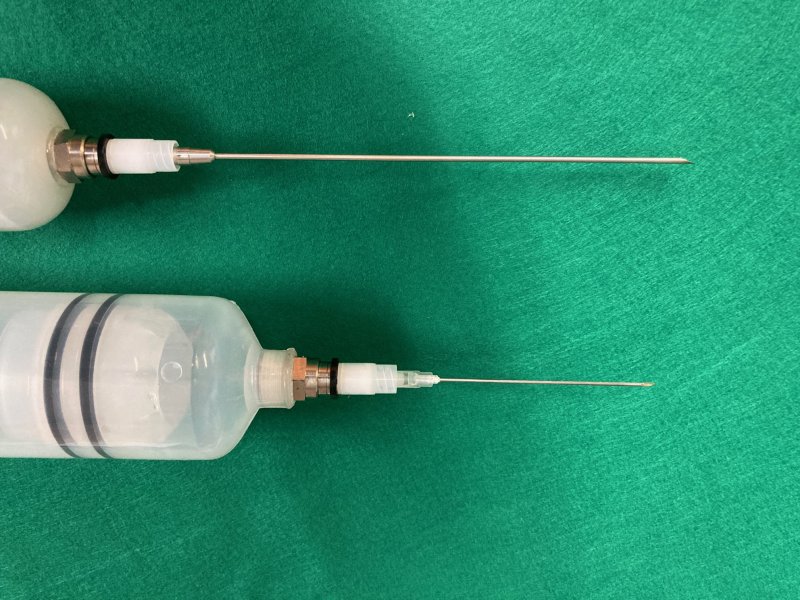 今回、新発売となりました、ハイブリッド・ポンプHBPは、ご遺体の処置に欠かすことのできない腹水ガス抜きのシーンで、電動機器関連の音が気になる場所や電気機器などが使用できない場所でも素早く腹水やガス抜きをして、防腐剤を注入する事が出来ます。