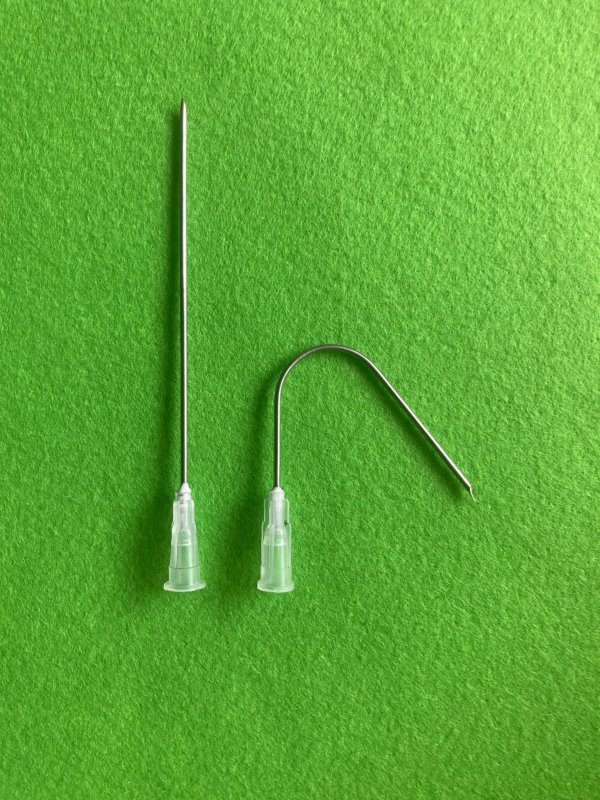 また、陥没や損傷部位の修復に適合できる、エンゼル業界初の針金のように自由自在に曲がるシリンジ針の製作販売も行っております。
