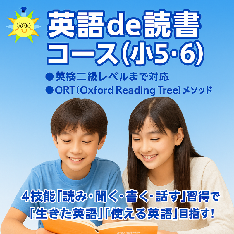 イギリス本国の学校で85%が導入してるオックスフォ―ド大学出版社製の世界的に有名なメソッドORT(Oxford reading tree)を使用した英語を母国語で学ぶそのままの指導方法で実施します。多聴・多読をコンセプトに4技能(読む・聴く・書く・話す)まで身に付けるコ―ス。 -