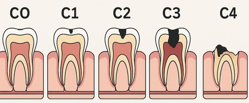 虫歯はCOからC4まで進行段階が分類されます。