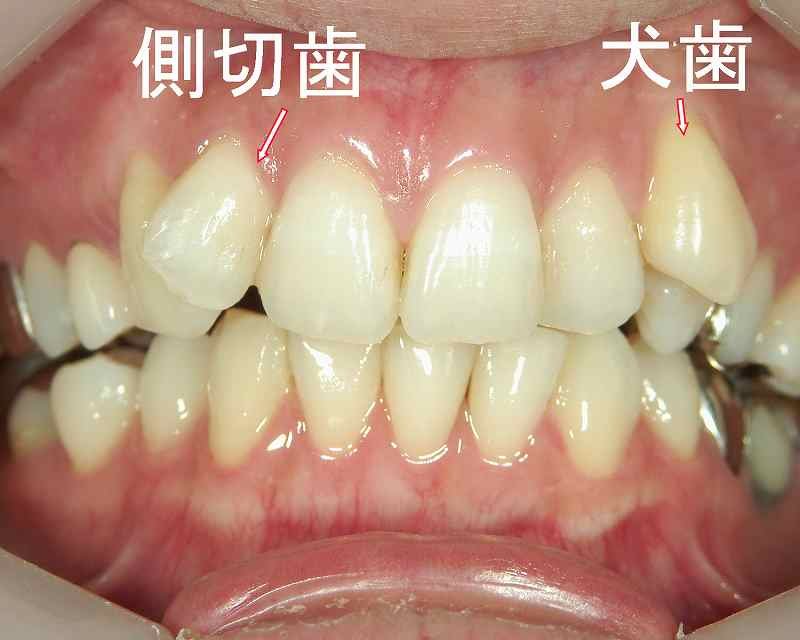 顎のスペースに対して歯が大きい場合、歯列内に収まりきらず外側へ突出しやすく、特に最後に萌出する犬歯で顕著に現れます。