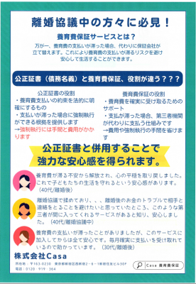 養育費が滞ってしまったときに,養育費を立て替えてくれる保険サービスです。