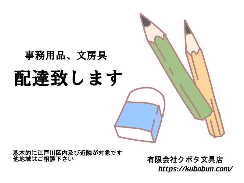 会社でお使いになる事務用品に限らず、学用品や色鉛筆・クレヨンなどのお子様がお使いになる文房具も配達しておりますので、ぜひご利用下さい。
